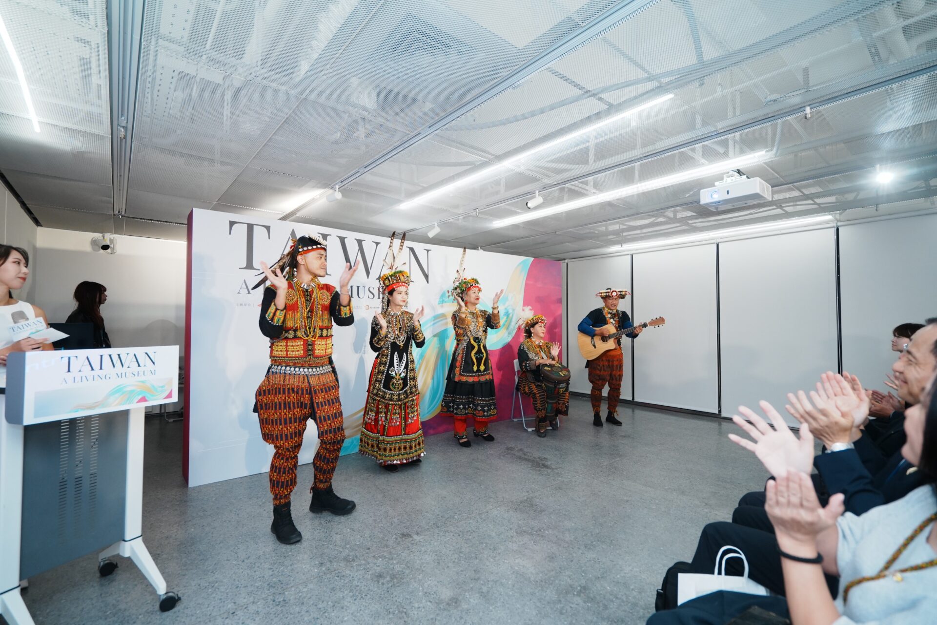 這場記者會在來自屏東縣瑪家鄉娜麓灣樂舞劇團表演的<拉拉伊(Lalai)>歌聲中揭開序幕,對排灣族人來說,Lalai是一首表示歡迎和歡慶的歌曲,代表族人一起唱歌跳舞、同歡齊樂。而娜麓灣樂舞劇團的成員們,也將於杜拜時間11月12日下午13:30,在ICOM國際博物館協會年會臺灣展開幕時演出,他們將以天籟的歌聲與渾厚的文化底蘊,讓世界看到臺灣原住民的獨特文化魅力。