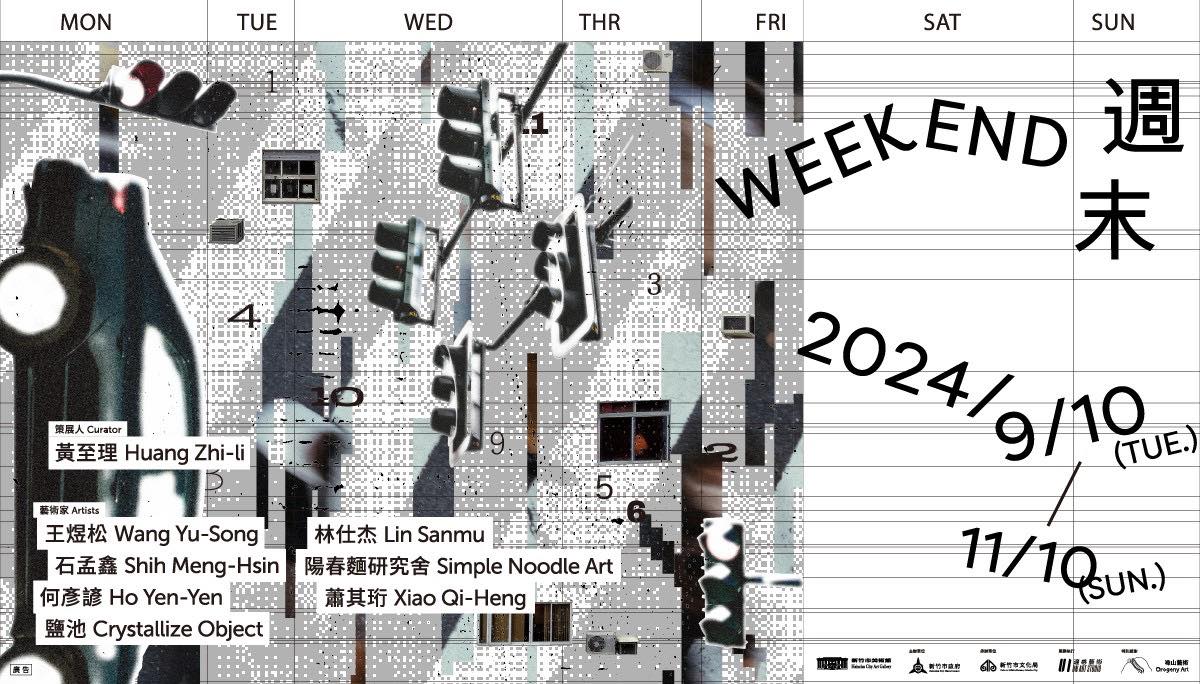 本展從反思當代的週末生活出發,進而探討週末在時間層面的特殊性、以及它所展開的時間政治問題,將週末視為現代人重新回到自身的最佳路徑。展覽展出七組藝術家/團隊、共十三件作品,涵蓋了繪畫、雕塑、實驗電影、裝置與現地製作等藝術形式。一樓展區以新竹濱海地區的場景為主,捕捉著沿海一帶輕鬆的假日生活感受。二樓展區關注城市中那些不起眼的、鮮少被意識到的事物,藝術家以裝置、影像與聲音等方式轉換事物的感知尺度,建立起事物與宏觀宇宙的內在聯繫,使我們看見人與物交織出那複雜多樣地生命樣態。