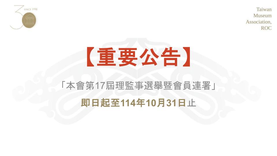 【重要公告】 「本會第17屆理監事選舉暨會員連署」即日起至114年10月31日止