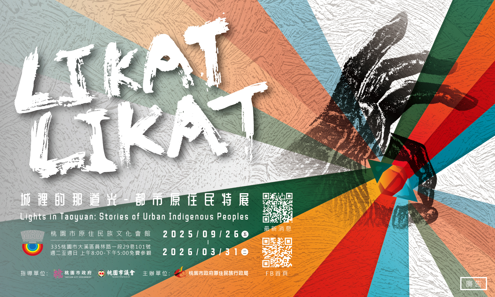 《LIKAT LIKAT 城裡的那道光-都市原住民特展》,以一、二、三代的都市原住民為主角,呈現他們在桃園如何走過適應、融合與創新的過程。在都市叢林裡,他們不僅尋找並守護著屬於自己的淨土,更以文化的韌性,連結原鄉,並在城市裡綻放獨特的光芒。