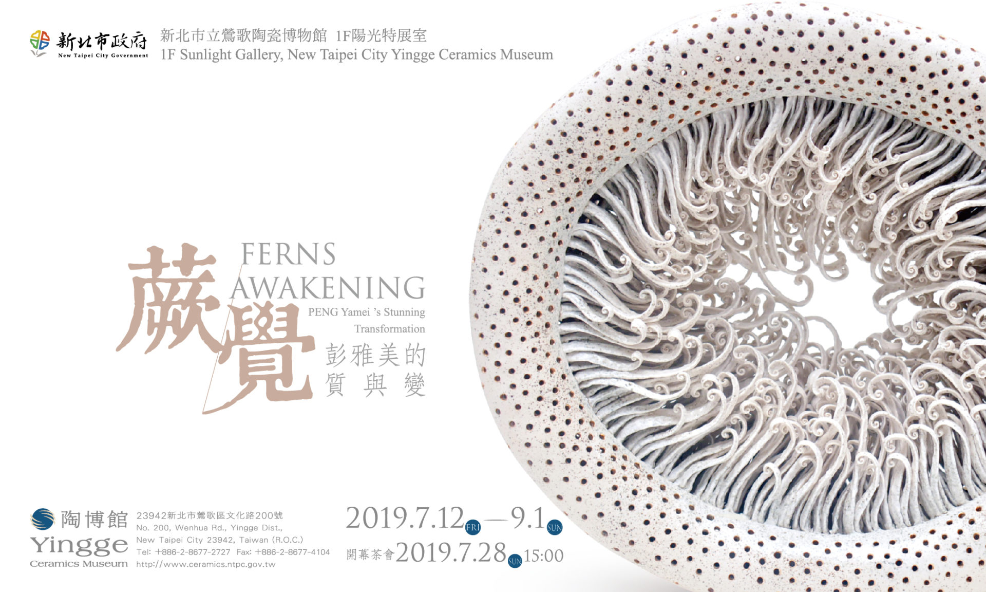 此次展出作品為彭雅美「蕨」系列之代表作,為近年參加國內外陶藝競賽得獎系列作品。十年磨一劍,作品中數不盡的蕨葉,都是彭雅美一片一片手工捏塑,投注高度決心、毅力及專注力,是用身體心靈與作品對話所產生的經典創作。她曾自述:「手捏一片蕨葉沒什麼,但持續捏好幾萬片,就變成一種修行與信仰!我的手指關節永遠在痛,但我很慶幸,自己可以選擇一條與眾不同的人生道路,並且勇敢無懼地走下去。我相信做一件平凡的事,持續數十年,就變得不平凡!」