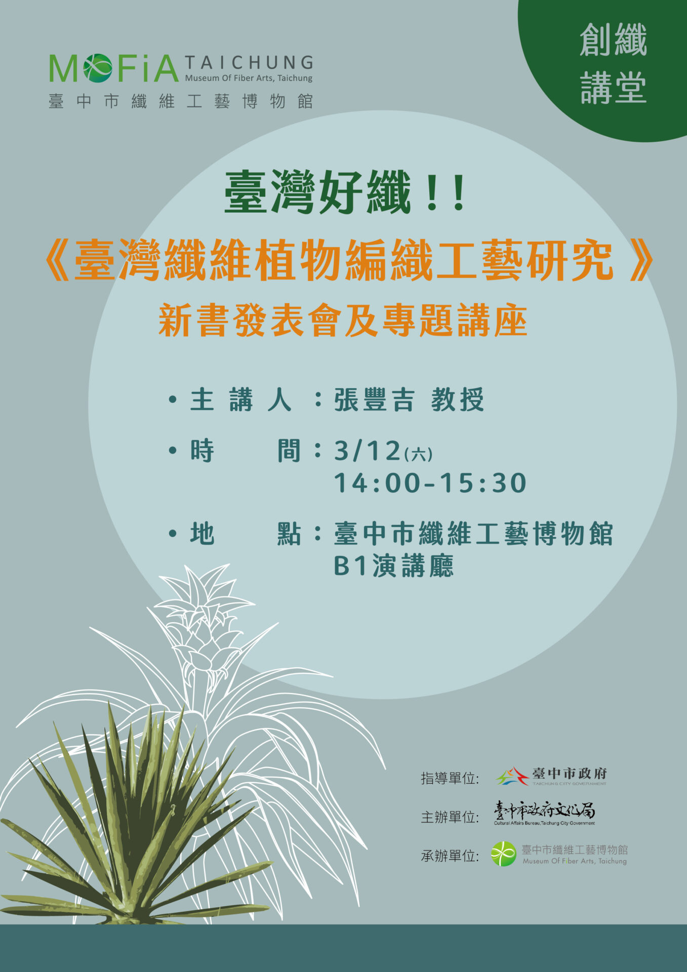 ❉ 展覽名稱: 創纖講堂:臺灣好纖!!《臺灣纖維植物編織工藝研究》新書發表會暨專題演講