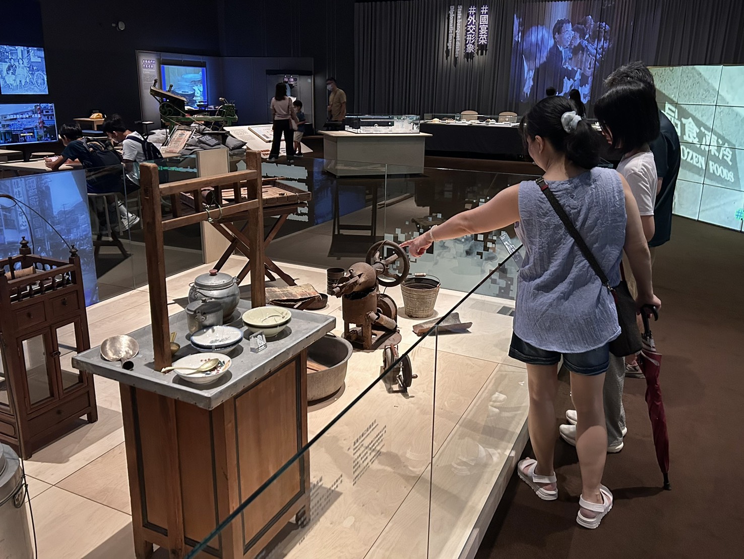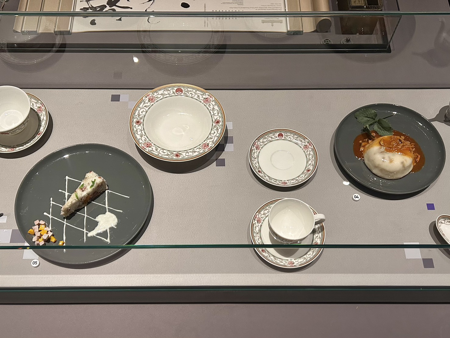 在展場裡,飲食記憶也成為引發觀眾互動討論的媒介。如雞蛋糕鐵件模型結合數位裝置,邀請觀眾透過虛擬遊戲體驗雞蛋糕的製作流程。「國宴菜單」單元,則將歷屆總統宴客菜色轉化為食物模型,比對不同時期的菜單設計,使觀眾思考飲食與政治文化間的關聯。這些展件與展示設計,讓飲食從靜態記憶,轉化為充滿互動的動態對話,讓觀眾在其中與歷史建立更深層的連結。