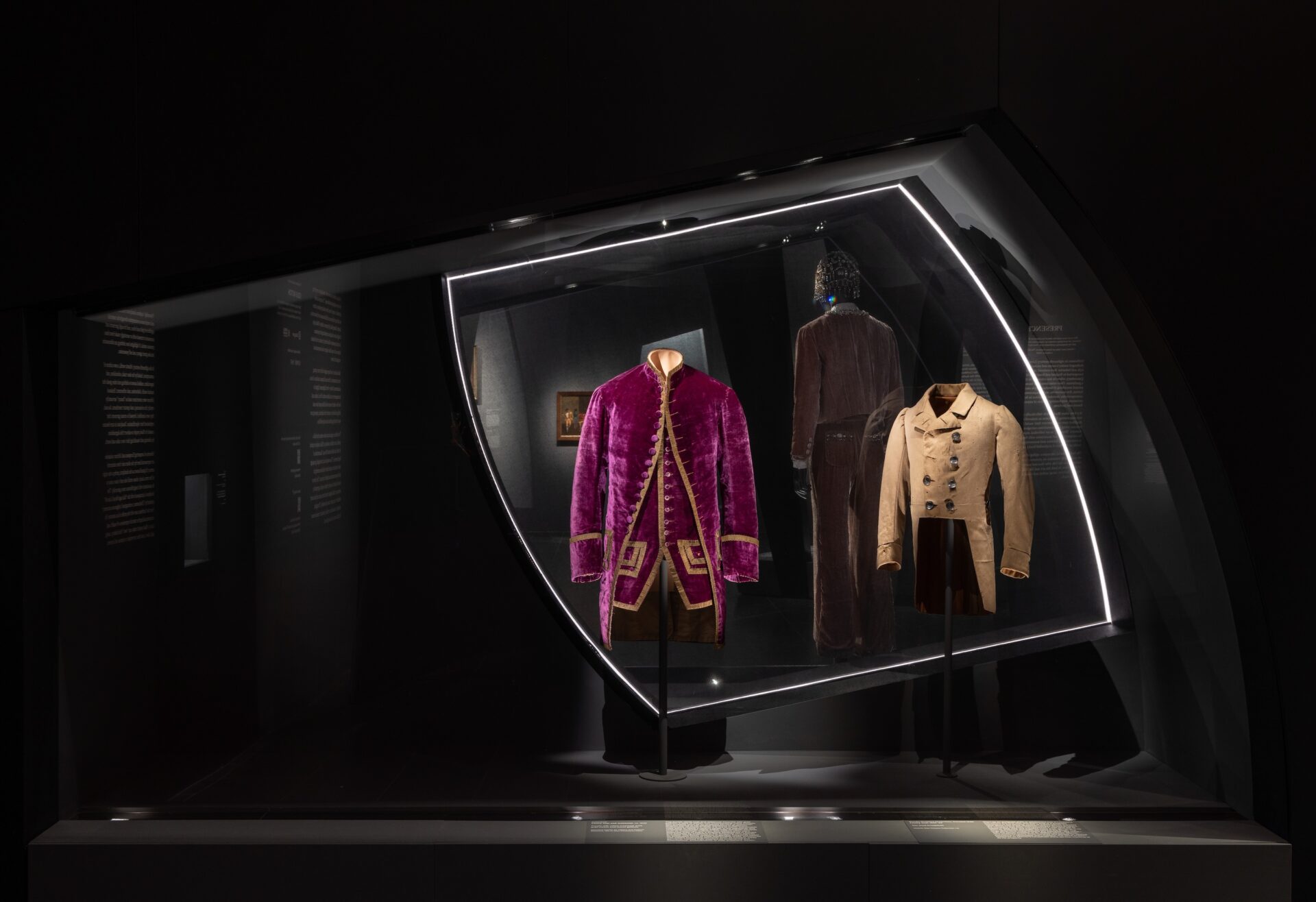 另一方面,展覽也關注黑人社群在品味表達中所面臨的挑戰。例如,「自由」展區(Freedom),觀眾可見黑人男性如何藉由衣著展現社會抱負。自1820年代開始,不少黑人菁英選擇穿著高級服飾、維持精緻的儀容,並委託繪製肖像畫,以傳達自信與地位。然而,他們的時尚選擇同時也引來種族主義者的嘲諷,如「黑臉諷刺漫畫」(blackface caricature),或是「黑臉滑稽劇」(blackface minstrel show)【註釋2】便刻意將「追求時尚」描繪成非裔社群不自量力的行為。