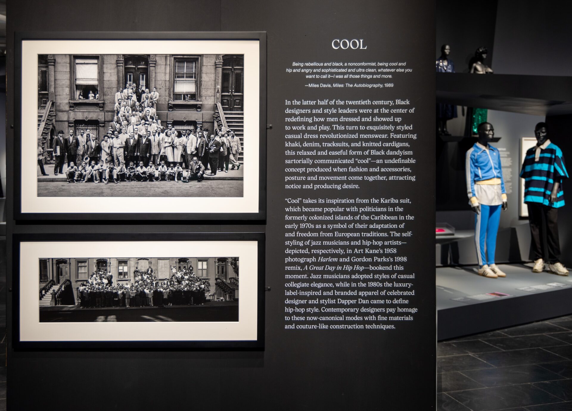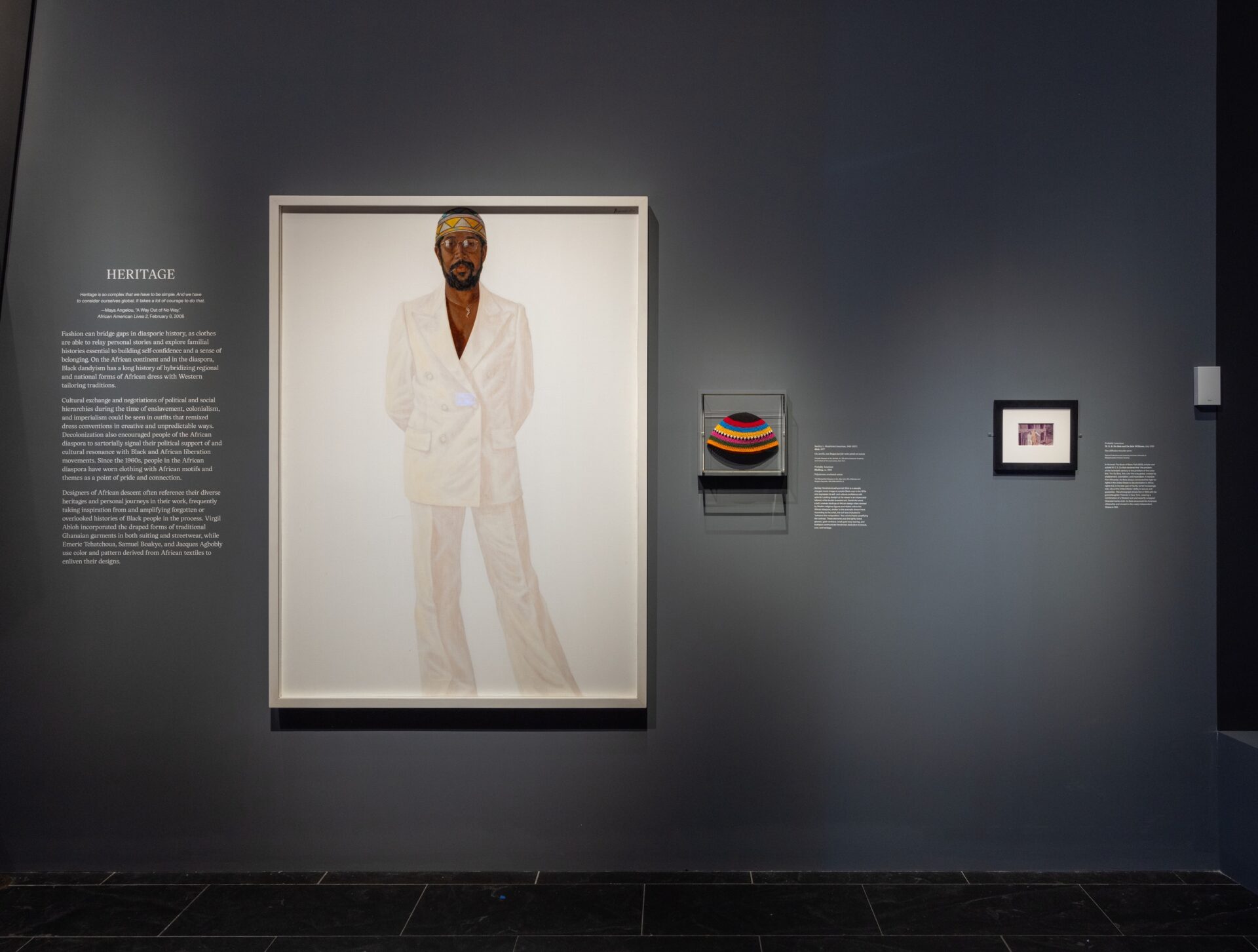 例如,「擁護」展區(Champion)強調黑人紳士先驅如何以穿著彰顯自由與權利。「體面」展區(Respectability)呈現社群如何以整潔莊重的服裝,反擊社會對黑人形象的貶抑。而「傳承」展區(Heritage)則關注服裝中的非洲元素與工藝,如何融入歐洲裁縫傳統。