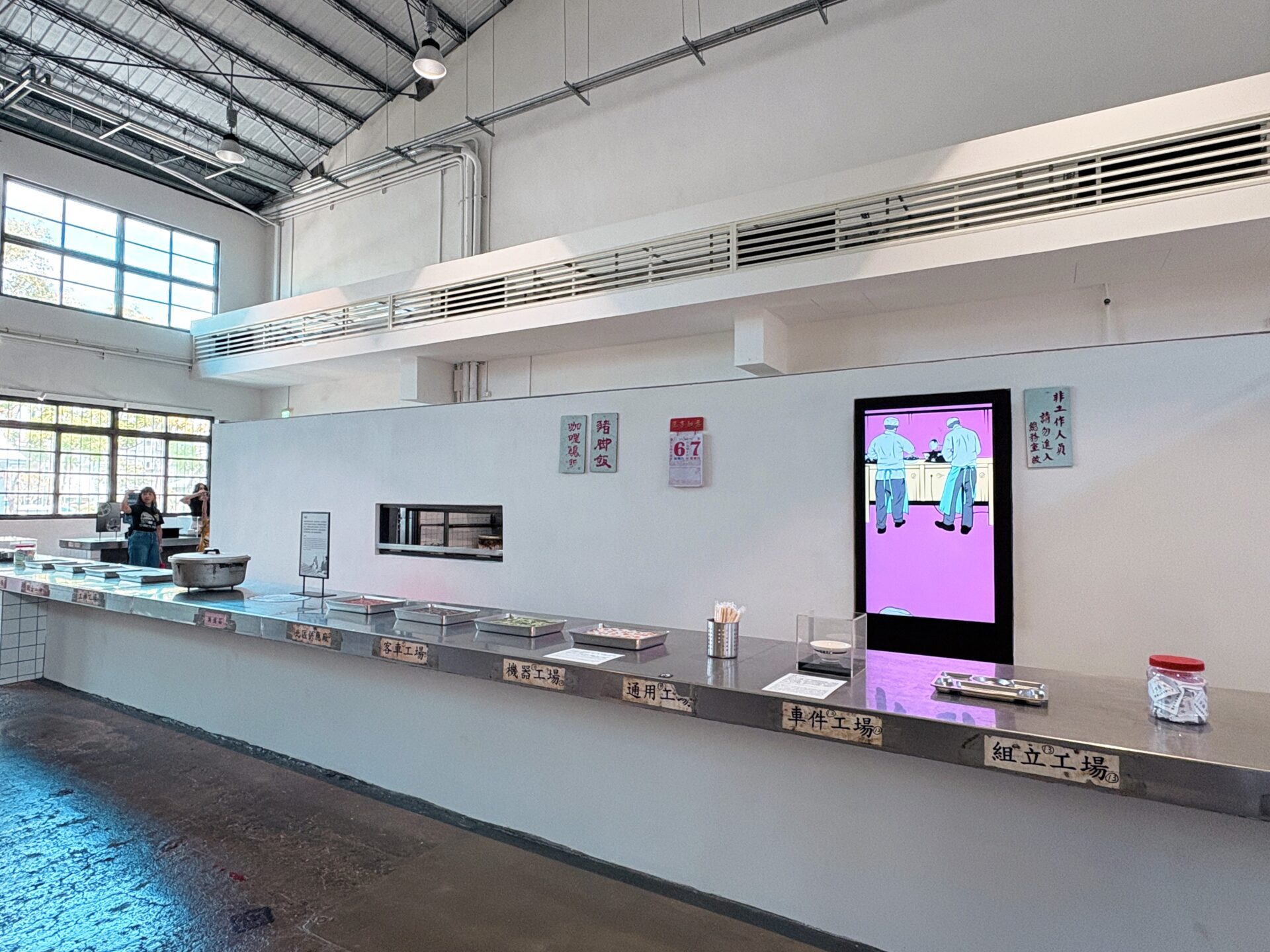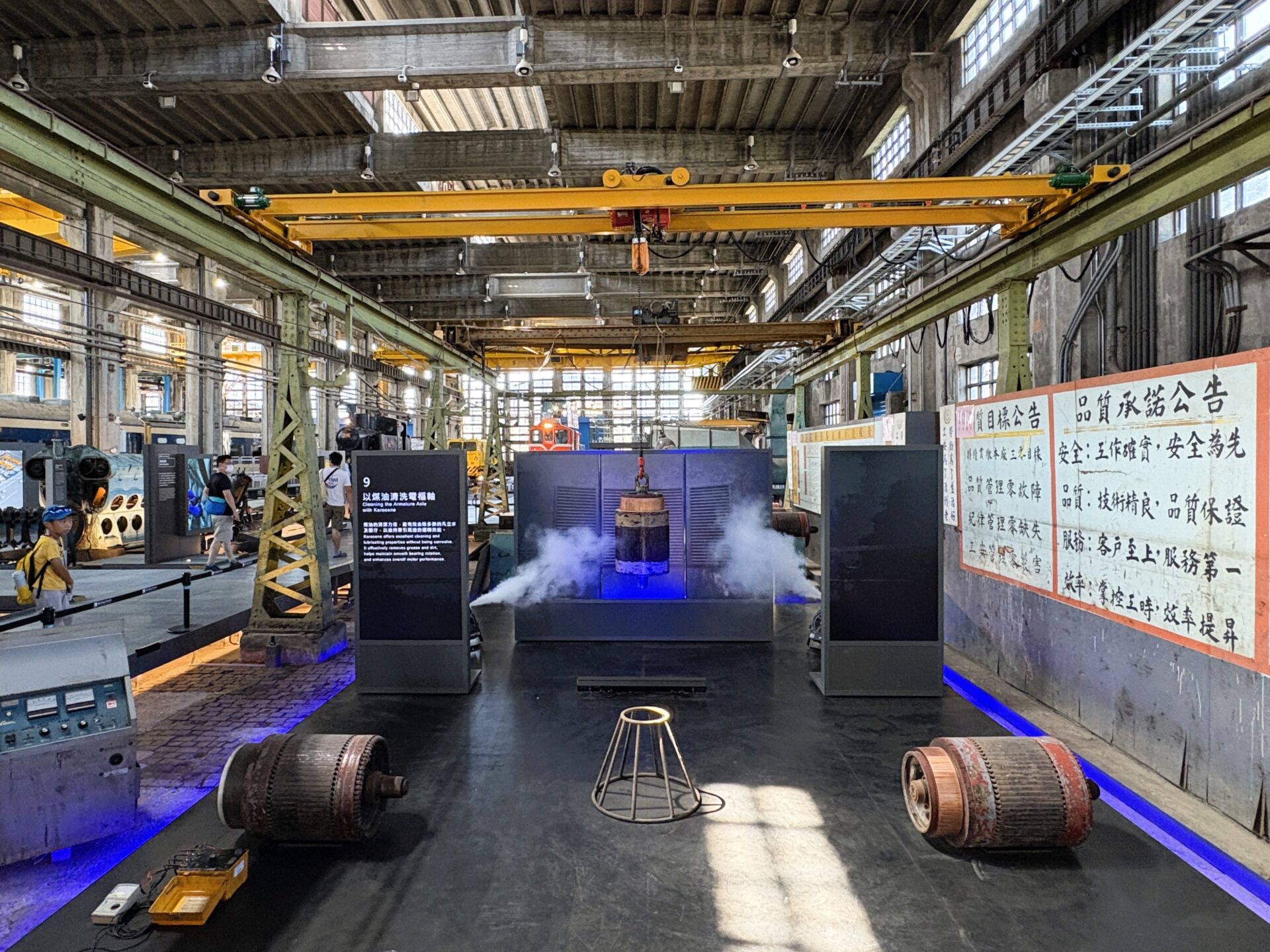 此外,「大禮堂的職工生活現地展」與「氤氳時代—員工澡堂」則透過漫畫、影音、物件,乃至水霧與燈光等效果輔助,重現員工的日常生活與休憩娛樂,也呈現這些空間在職場生活中的意義。鐵博的「現地展示」不僅止於保存,更藉由場域脈絡的再現,讓廠區歷史成為觀眾能身臨其境的經驗。
