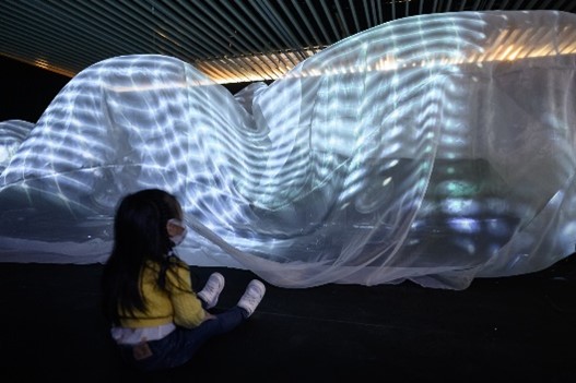 法國SUPERBIEN團隊打造「海洋奧德賽沉浸劇場」,並與海洋物種互動。(圖/桃園市立美術館提供)